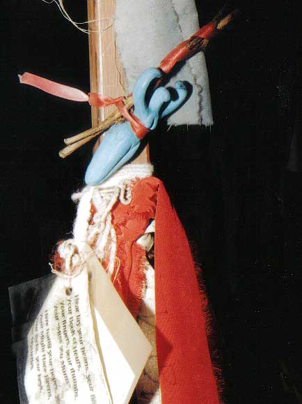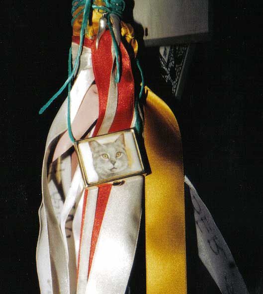 The gate is always covered with such offerings: Ribbons, flowers, dolls, candles in jars, small toys, beads and myriad objects made sacred by intent. [SLIDE 7]. Once everyone who wished to had left an offering, John brought the ritual to a close [SLIDE 8] with a libation of gin to the Winchester Geese. All then bade their farewells - to each other and the dead - before going their separate ways.